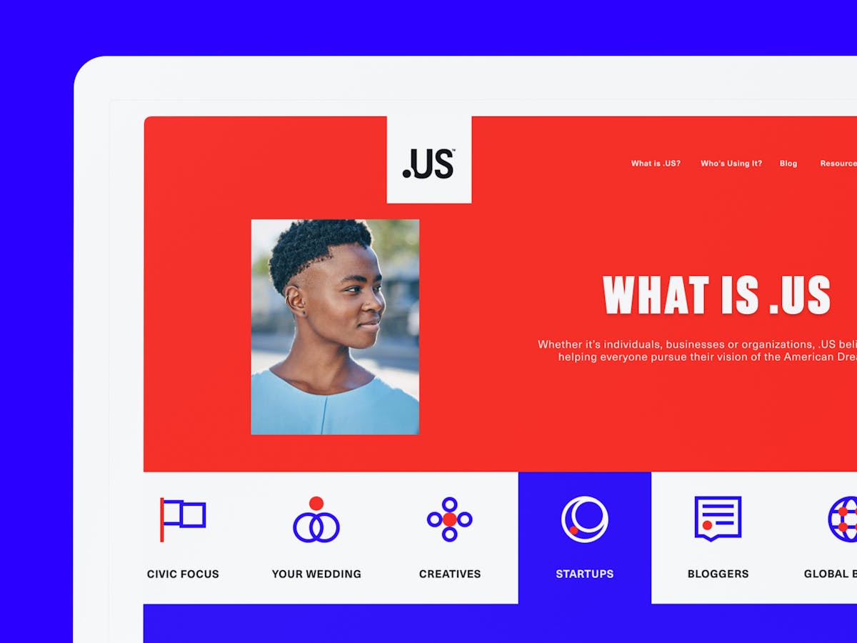 The .US domain is the online destination of choice for anyone with a dream to chase, an idea to share, a cause to champion, or a business to promote. Whoever you are, wherever you come from, the .US community is the online place to share your story, think globally, and connect locally. After launching in 2002, .US was never widely-adopted in the United States due to a variety of factors, but mainly because .com was so engrained in the minds of consumers. Twenty years later, our in-house team was tasked with giving .US a much needed brand refresh.